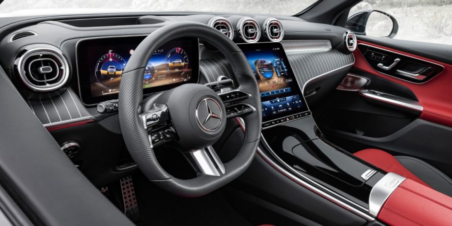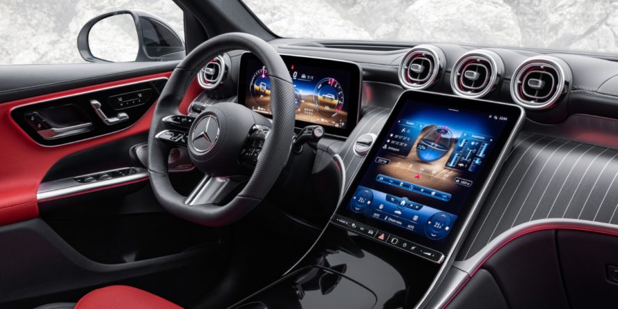 在车身方面,新 GLC 的长度增加了 6 厘米,到达 4.71 米。车子乃至从后视镜到后视镜都变窄了一些,高度也差不多。高达 600 升的行李箱变大了 50 升。在内部,GLC 沿袭了当时奔驰的规划:中心显现屏,在这种状况下为 11.9 英寸,在内部规划中占主导地位,驾驭员的液晶显现屏有必要为 12.3 英寸。用于导航的 MBUX 增强实际作为可选附件供给:摄像头捕捉车辆前方的环境。中心显现屏显现运动图画并叠加虚拟目标、信息和符号。例如,这包含交通标志、转弯指示、车道改变建议和门牌号码。