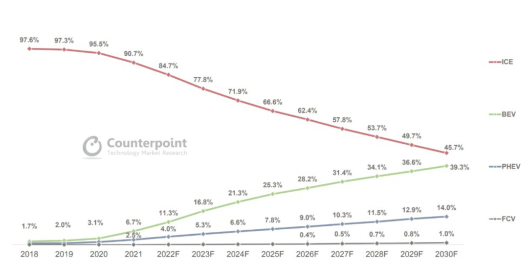 依据 Counterpoint关于乘用车猜测的最新研讨陈述显现,到 2030 年,有对折轿车都将装备电动动力系统。购买者环保认识的进步、愈加标准的碳排放规则、政府的支撑以及整个生态系统参与者的协同尽力,都有助于电动轿车 (EV) 在全球范围内的遍及。但是,到 2021 年,电动轿车的浸透率仍低于全球乘用车销量的 10%。