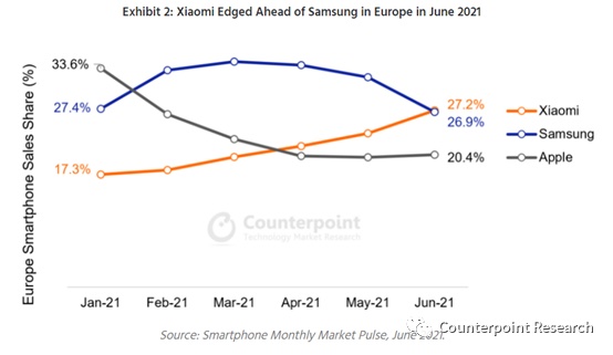 Stryjak弥补说:“尽管小米在二季度体现更好。但三星因为越南工厂疫情罢工的影响,在5月和6月遭受了严重的供给问题,供给的问题现已开端影响出售。三星2021年6月在欧洲的销量环比下降了20%,这为小米在本季度末成为欧洲最热销的智能手机厂商打开了大门。不过,三星的问题应该是时间短的,所以小米要想守住头把交椅,还面对一些应战。”